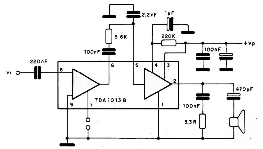 This audio amplifier has an internal DC volume control with logarithmic characteristics and a control in a range of more than 80 dB. Its very wide supply voltage range (10 V to 40 V) makes it ideal for the design of equipment powered by the local network such as televisions and sound equipment. It is presented in a 9-pin SIL enclosure. Among the advantages presented by this integrated we have: