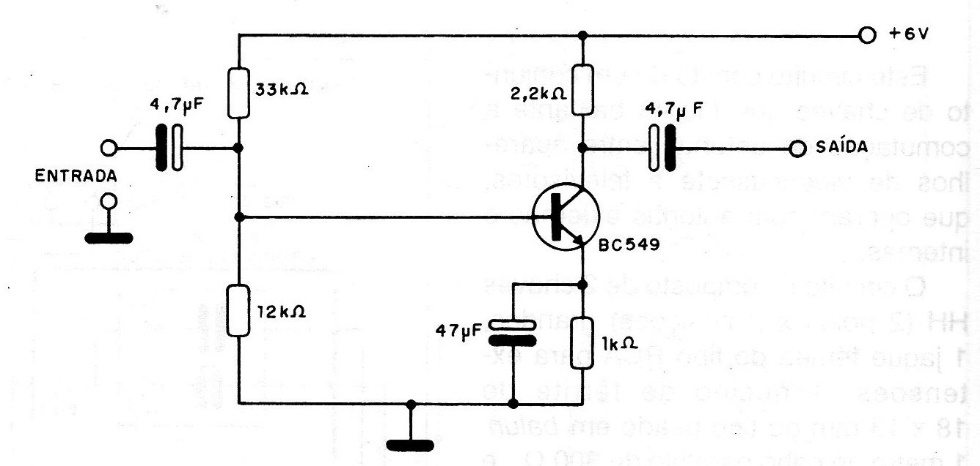 The circuit shown in the figure serves as a pre-amplifier with a voltage gain of around 12 times, which allows it to be used with low-efficiency or medium-impedance transducers, such as microphones, dynamic capsules, etc. The supply is made with a voltage of 6 V obtained from the amplifier with which it must work or from batteries, since the consumption is very low. The current drained by the circuit is of the order of 1.6 mA. The transistor used must be of low noise as indicated, for better performance and the signal input and output cables must be shielded.