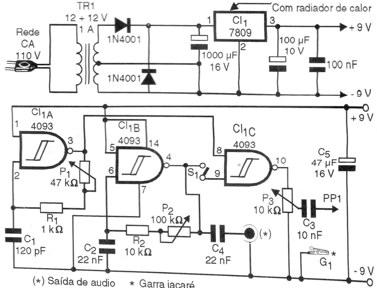 This small signal generator for the bench was found in a 1988 documentation. The signals are rectangular with frequency adjustment and active cycle, in addition to an intensity adjustment. The signals are rich in harmonics and can be used to adjust both audio and RF circuits.