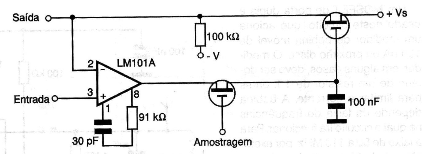 The sampling and retention circuits are used in analog to digital converters and in some other applications that involve retaining the amplitude of a signal for a certain time. The sampling command is made by a field effect transistor at the corresponding input. The operational amplifier guarantees a high input impedance for the circuit, which must be powered by a symmetrical source. Field-effect transistors can be of common junction types such as BF245.