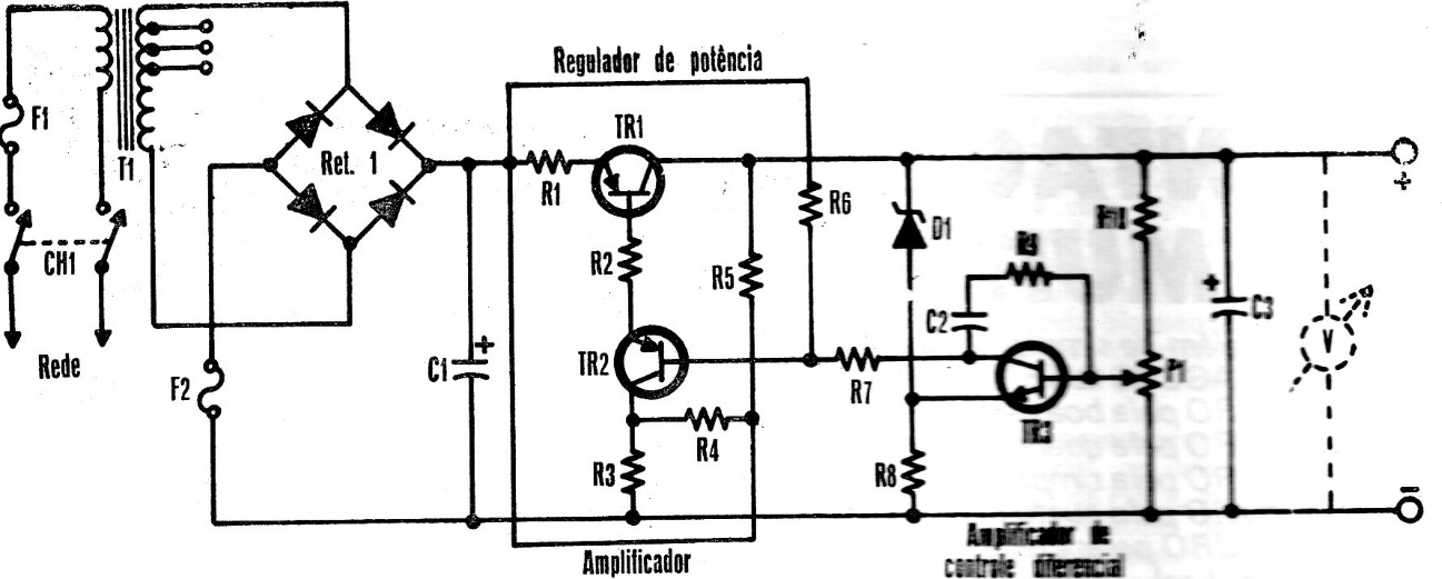 This circuit supplies voltages from 6 to 18 V with a maximum current of 2 A. We found it in a documentation from the 70's and it is characterized by having a protection circuit that disarms it when the current exceeds 1.5 A, the other value that can be changed by changing the sensor components.