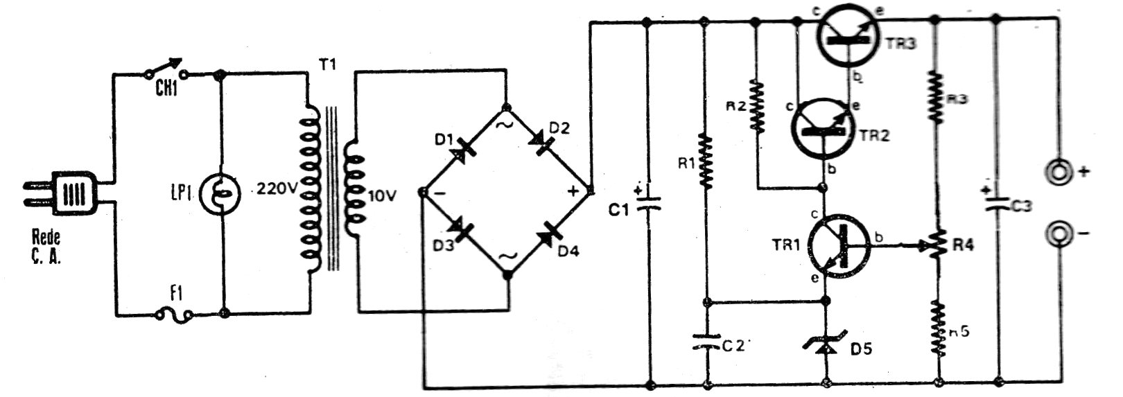 This power supply, found in a publication from the 70s, provides voltages from 4.5 to 9 V with a maximum current of 1 A. TR3 must be mounted in a good heat radiator and many of the components can be exchanged for modern equivalents.
