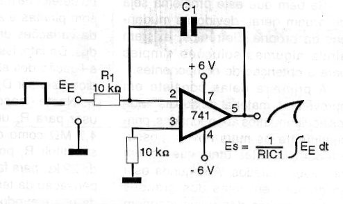 In the figure we have the simple way to obtain an integrator with an operational amplifier of type 741. The relationship between the output voltage and the input voltage, depending on the components used, is calculated by the formula next to the diagram. Note that the power supply must be symmetrical and that, from a rectangular input signal, we have an exponential signal at the output. Other operational amplifiers can be used in the same configuration.