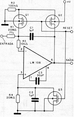 We found this circuit in a manual from National Semiconductor (now Texas Instruments), using the operational amplifier LM108 that is no longer common today, as well as FETs. Equivalents can be used, and the power supply must be symmetrical.