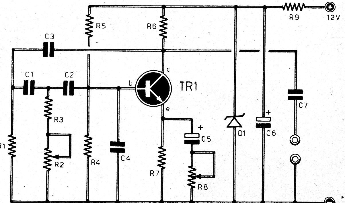 This article was written by A. Fanzeres in the 1970s. We kept the original text. With the circuit we present, it is possible to obtain an audio signal, whose frequency is variable (via R2) and the amplitude (via R8), at the output terminals. The circuit is simple and does not present any difficulty in operation. The output power or amplitude can be applied to an amplifier if an extra strong signal is desired, but for common measures and applications the signal is already adequate.