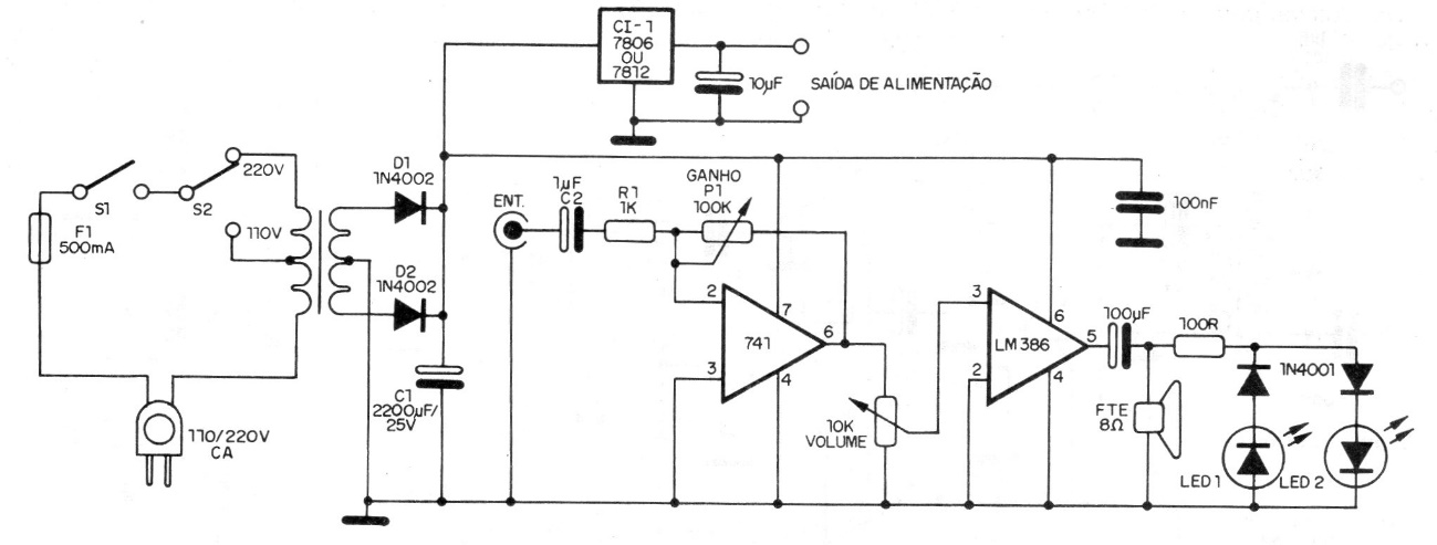 This circuit is from a 1990 publication, but the idea can be used in a current project to supply multimedia and other battery powered stereos. The circuit includes a small amplifier and in a stereo version two similar channels with a single source must be installed.