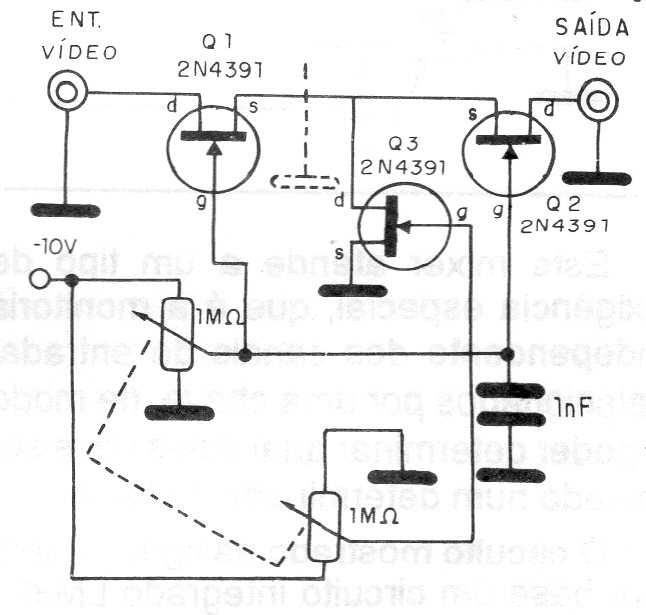 This circuit has its gain controlled by voltage. The circuit, which uses discrete components, was found in a 1992 publication. The adjustments are made in double pots. The impedance is 30 ohms, and the pass-through range is 10 kHz.