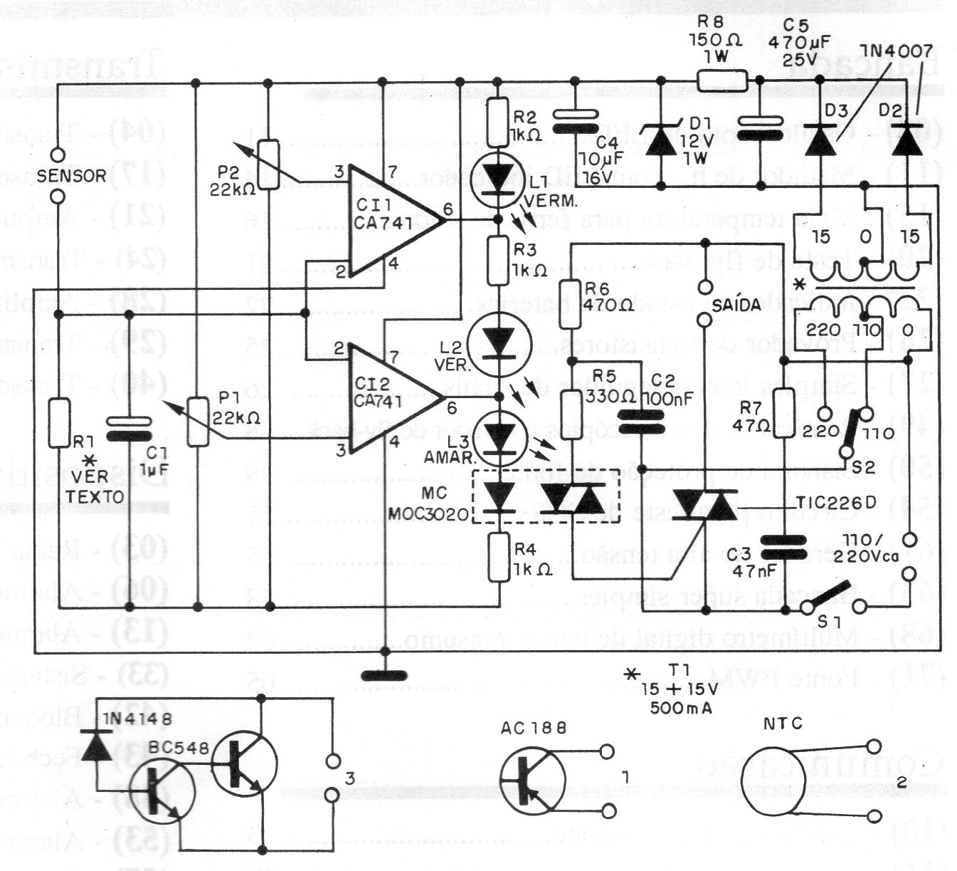 This circuit is from an old documentation from 1995, but it can be easily assembled today by the components it uses. R1 can be a 220k sensor, 220k NTC, or 10k. The circuit directly controls a triac that depends on the power of the heating element.