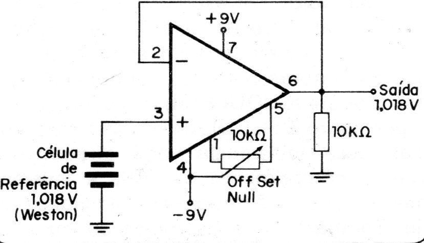 This circuit uses a reference battery used in laboratories to provide an accurate voltage for adjusting instruments. The circuit is from an old documentation and needs a symmetrical source of 6 to 12 V. Other operational amplifier can be used.