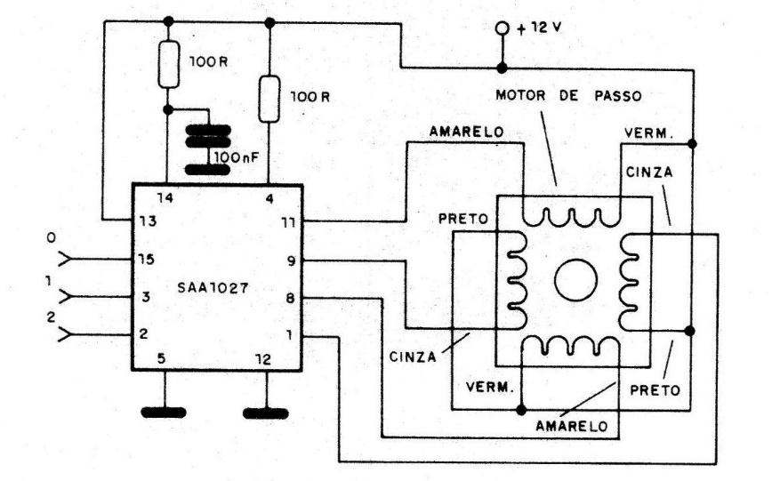 This circuit uses a dedicated Philips integrated, which consists of a stepper motor control from 3 inputs that can be obtained directly from a microprocessor. The engine is 7.5 °, that is, 48 steps per revolution.