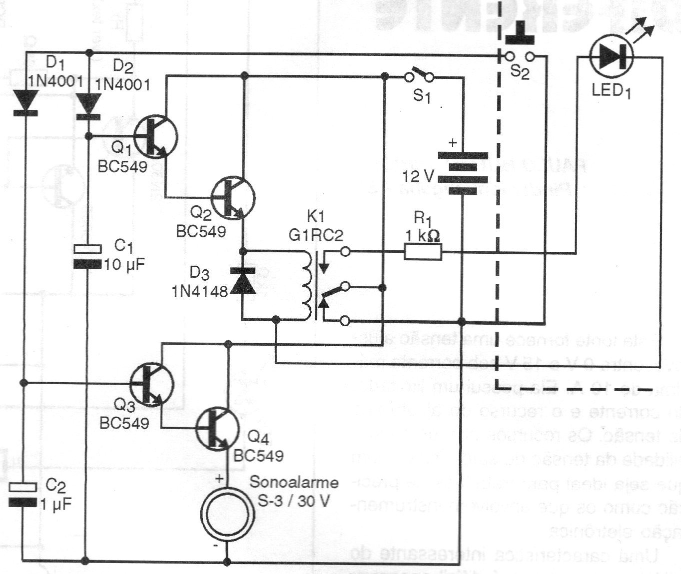This circuit was found in a 1998 documentation but uses common components that can still be found today in the specialized market. The circuit time a bell for a time given by capacitor C1 and Por C1. The circuit uses a buzzer with a Sonalert type oscillator, but nothing prevents it from being adapted to use an oscillator.