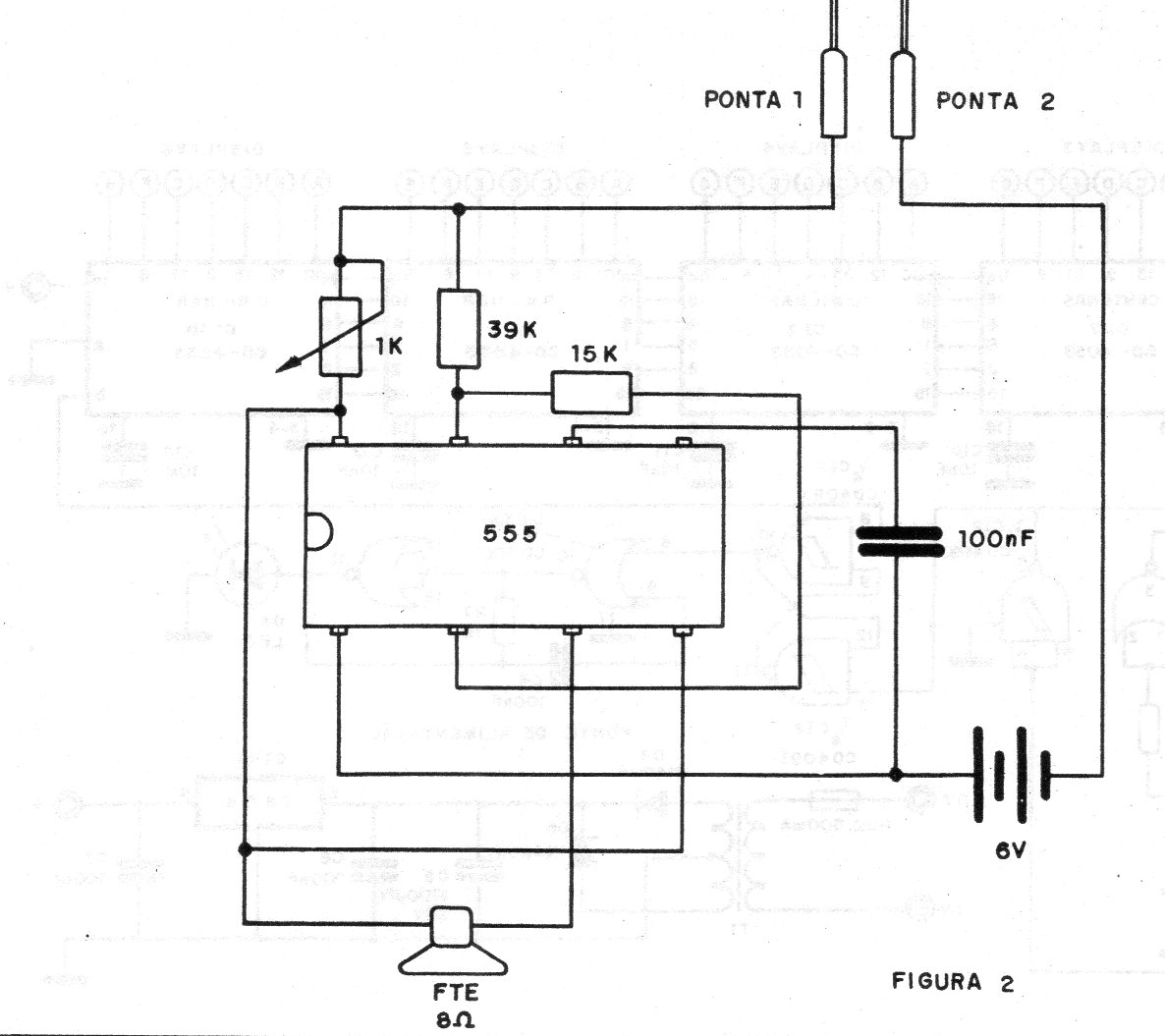 This simple circuit of a question-answer minicomputer with tray was found in a 1987 magazine. The oscillator that makes the sound indication of the right answer uses a 555 and is powered by ordinary batteries. The subjects chosen for questions and answers are up to the reader.