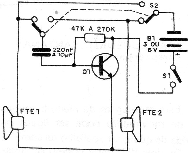 This simple circuit uses small speakers for both listening and speaking (microphone). The feeding is done by two or four small batteries and the wires must not be too long, maximum of 20 meters. Q1 can be a BD135 or any NPN power transistor.