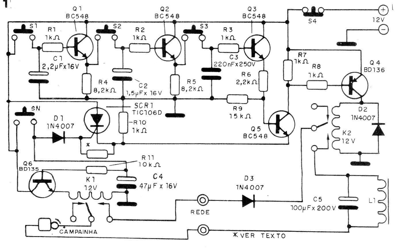 This circuit is from an old documentation, but as it only uses common transistors even today, its assembly can be done without problems. The circuit requires the right sequence of switches to be pressed to activate the relay. If a wrong switch is triggered, the circuit resets. The circuit is for 12 V which is the voltage of the relay used. L1 is the solenoid coil for mains voltage.