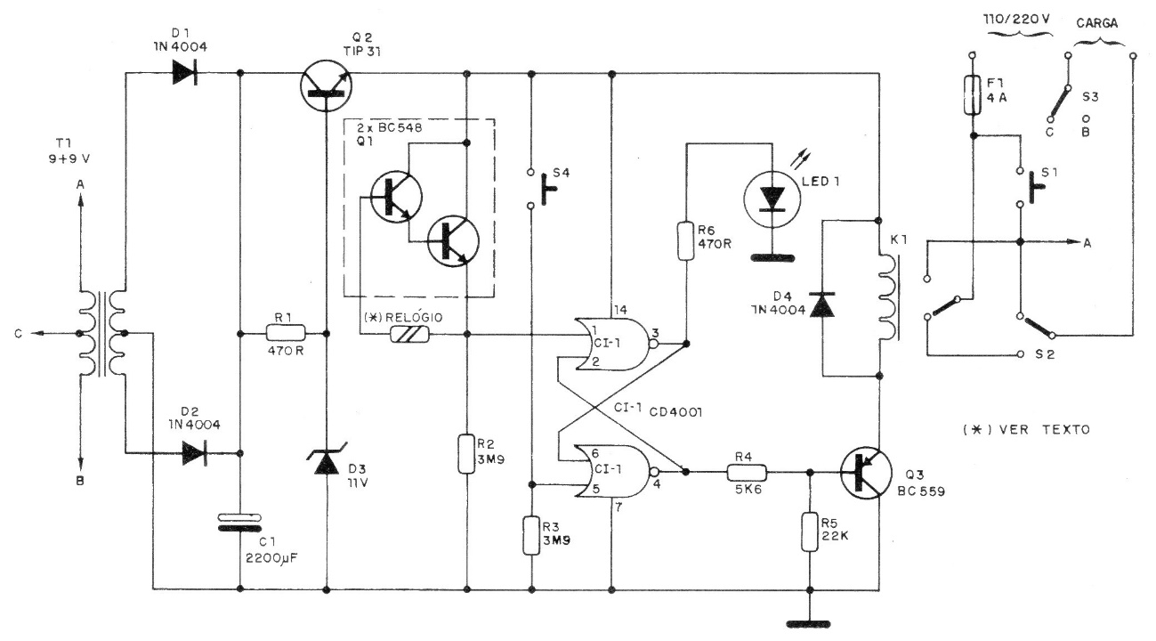 This circuit was found in a 1987 documentation. It is a timer that takes advantage of the signal of a common digital clock. When we activate the circuit, pressing S1 it goes on standby activating a relay when a digital clock signal is detected (pulse). The circuit uses common components that can be found easily and has a bistable action.