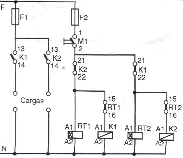 We found this circuit in a 1998 documentation. It is based entirely on relays that must have voltages equal to those used for power and contactors, as well as lamps.