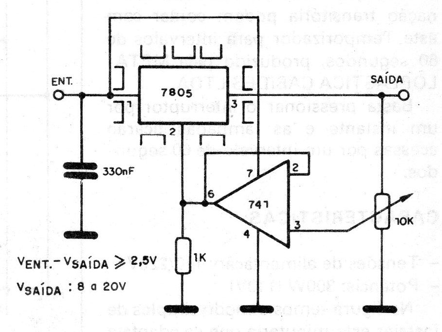 With this circuit we can obtain different voltages of 5 V, but with great regulation, and output current of up to 1A, using a 7805. The voltage reference is given by an operational amplifier 741 and is adjusted in the potentiometer (or trimpot) of 10 k. Note that the input voltage must be at least 2.5 V higher than the desired voltage at the output, and that the 7805 must be mounted on a heat radiator.