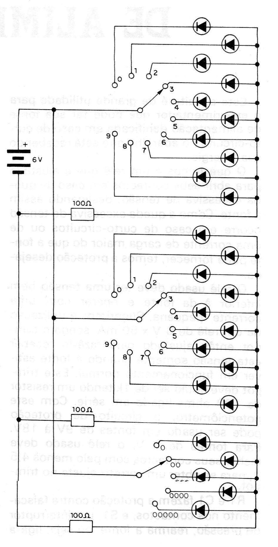 Have you not yet memorized the color code used to identify resistors and capacitors? Do you have difficulties in determining the value of a polyester capacitor or a resistor, even though you know the color values used in the code? If you want to permanently get rid of this reading problem, we give you an electronic solution, a very comfortable and infallible “identifier” device to be used on your bench. In this identifier there are three keys where you fix the colors of the components being read. Each switch corresponds to one of the bands, or rings, of the capacitors or resistors. Once the colors are fixed, the LEDs that give the values obtained will light automatically. For example, if you set the colors red, black, and orange, the lit LEDs will correspond to 1, 0, 000, which means that if it is a resistor, its value will be 10,000 ohms or 10 k and if it is a capacitor the value will be 10,000 pF or 10 nF.