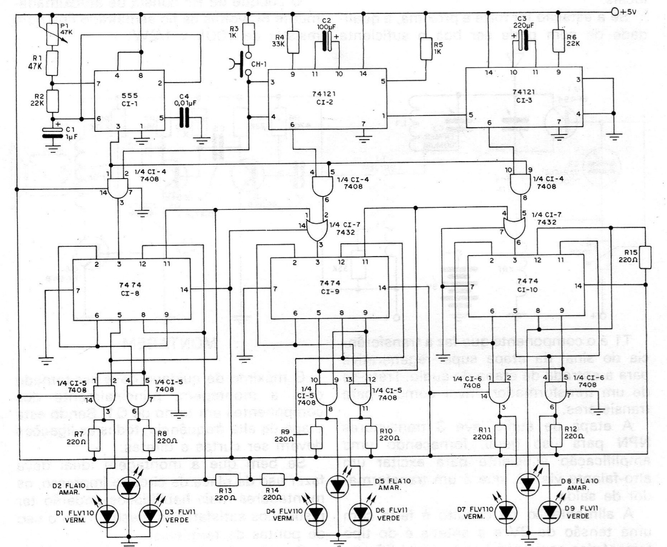 For those who like electronic games, have good experience in the design of printed circuit boards and know how to work with integrated devices, here's something interesting. It is an electronic version of the traditional slot game, very common in casinos. In this game, we have a "machine" in which the player first inserts a chip. Then, this same player pulls a lever that starts a random process in which fruit figures follow each other on a display. According to the combination of figures that is obtained at the end of the process, the player can win a prize that consists of the return of a certain amount of chips.