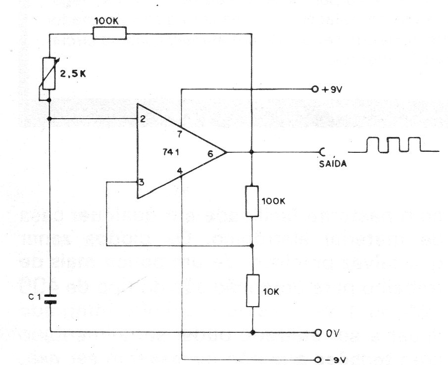 This configuration, found many times on this website, is from a 1977 documentation. The frequency depends on the capacitor and the frequency adjustment can be done in the potentiometer. The capacitor can have values between 100 pF to 1 uF for frequencies in the range of 1 Hz to 20 kHz. The power supply must be symmetrical.