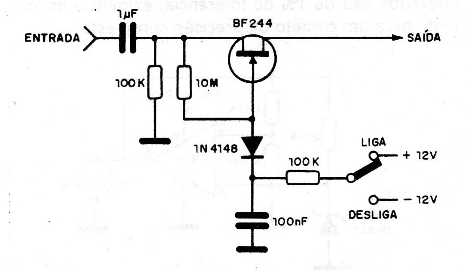 This circuit allows the control of audio signals from a DC signal obtained from a simple switch. We can use this circuit as a remote control for audio applications. The field effect transistor can be exchanged for equivalents, and the capacitor has its value given depending on the type of audio signal controlled, to avoid switching noise.