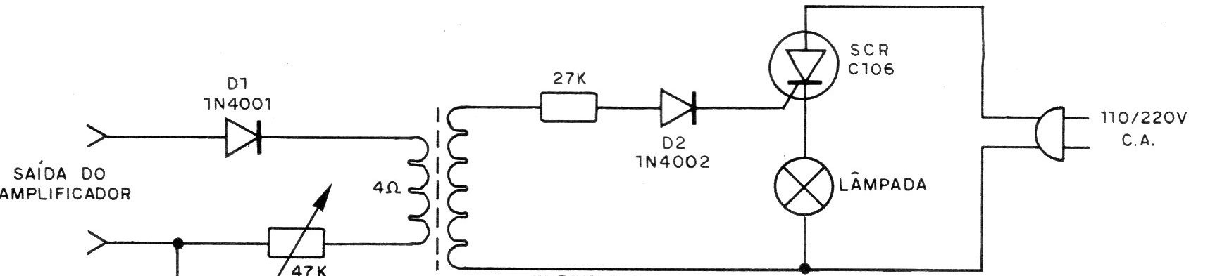 I found this simple basic circuit of rhythmic light in a 1980 documentation. We warn you to be careful with the adjustments, indicating the connection of a 47 ohms resistor with the potentiometer. The SCR can also be the TIC106 with a small heat radiator and the lamp must be incandescent (spot or colored from 5 to 60 W). The diode admits equivalent as 1N4004 or 1N4007. The SCR must have voltage according to the network.