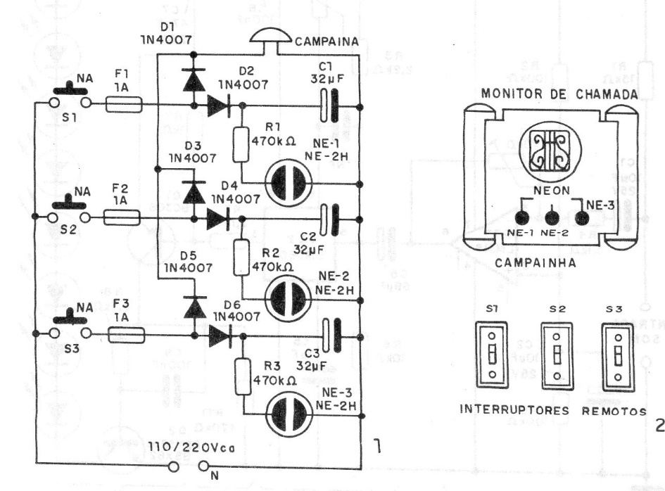 This very simple circuit from a 1995 documentation lets you know which input button was triggered when a bell ring. This circuit is interesting when the doorbell can be activated from three different entrances in a residence or other location.