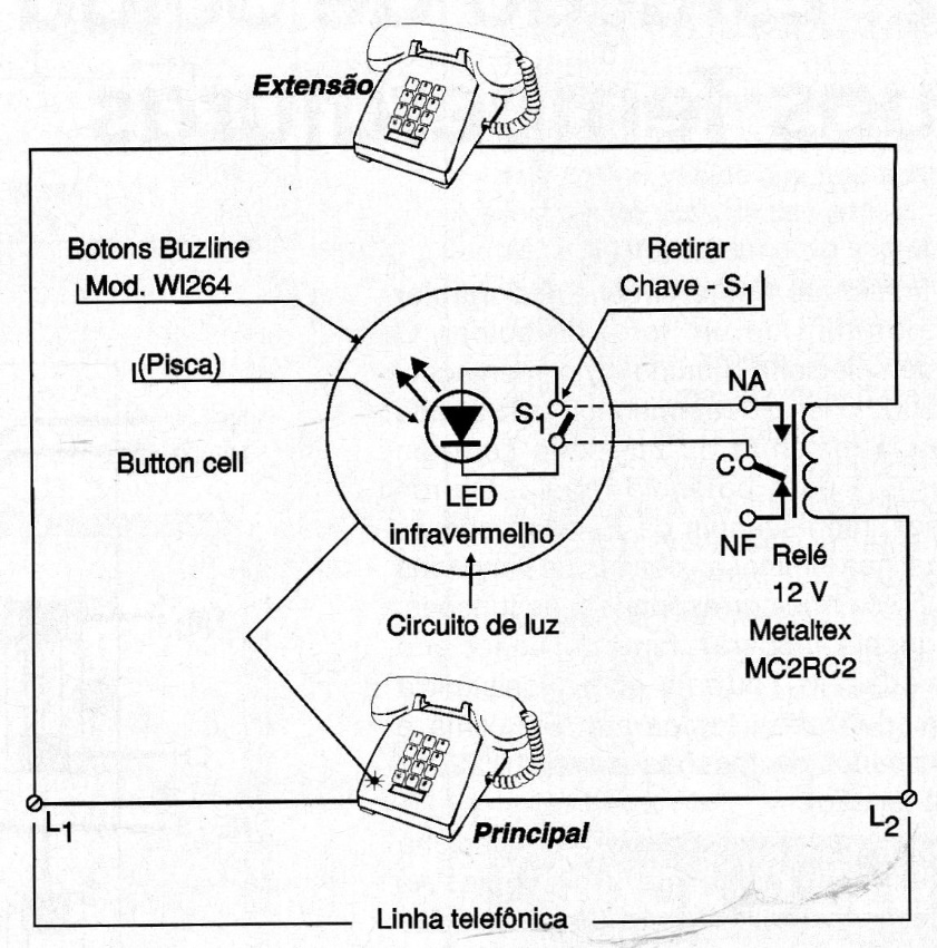 This circuit was found in a 2002 publication. It is a circuit that indicates when an extension is being used. The LED is common, and the relay is 12 V sensitive type with a trigger current of 50 mA or less.
