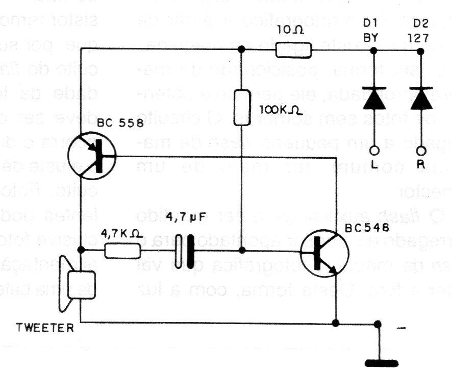 This simple practical circuit can be adapted on a motorcycle to indicate the activation of the indicator. The speaker is of the miniature type with 2.5 cm and the circuit can be installed in a small plastic box powered by the energy of the indication lamps, where it is connected.