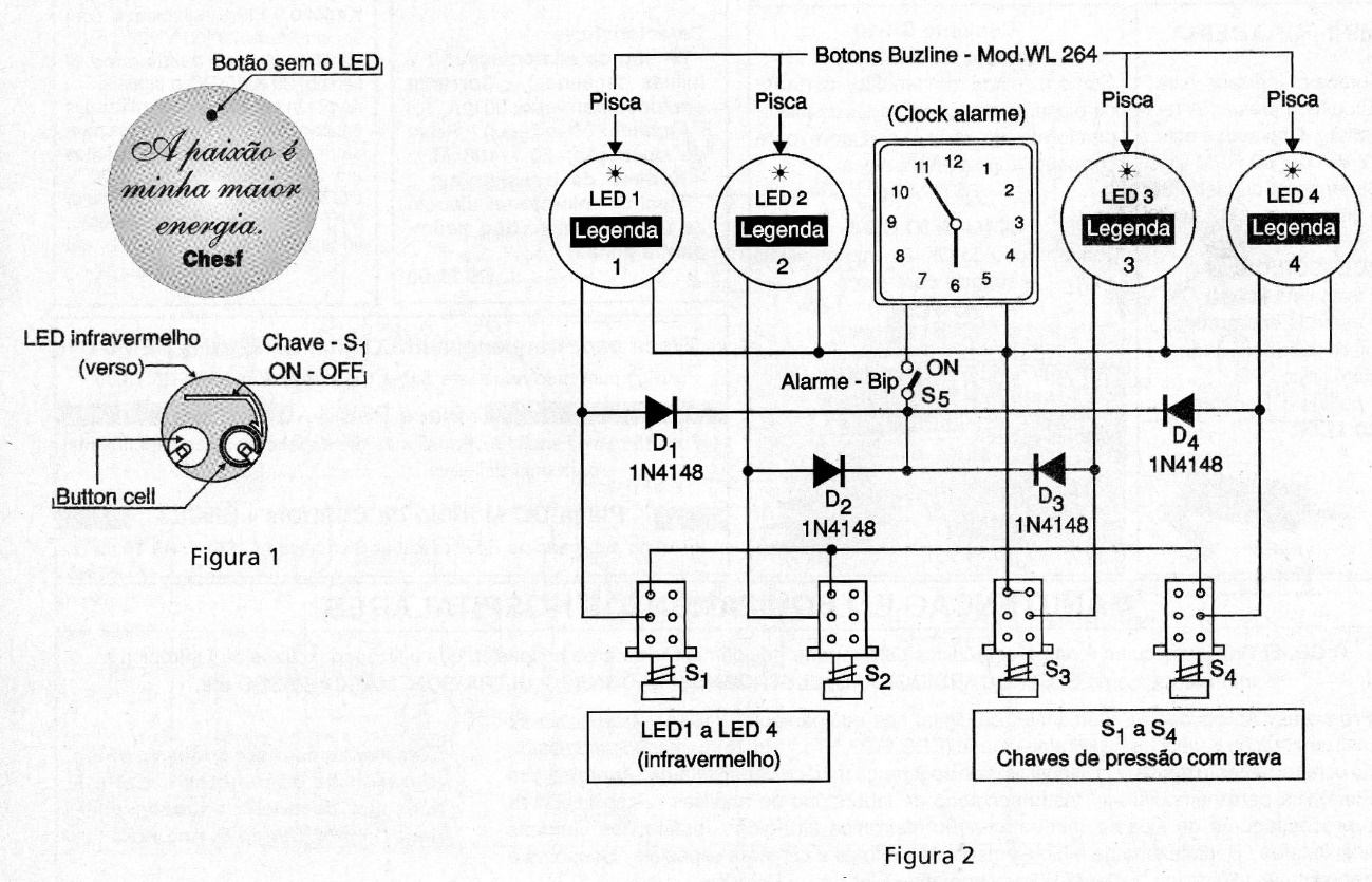 This 2002 circuit uses many more electrical components than electronics. The keys are common, and the alarm is a common clock that has this feature.