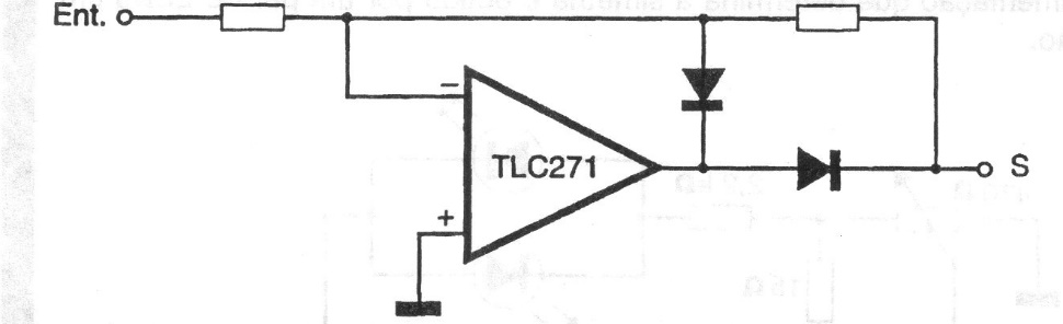 In the figure we show how the half wave rectification of a signal can be done using an operational amplifier. The resistor values depend on the signal strength and the desired gain. Equivalent operational amplifiers can be used.