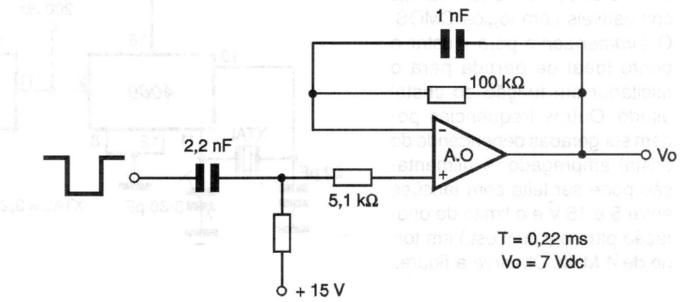 This circuit applies to any common operational, the time constant for the given values being 22 ms. The circuit must be powered by a symmetrical source.