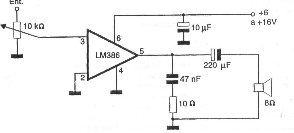 This circuit has appeared several times on this site in different applications. This is from 1997 documentation. The maximum power of 1 W comes with a 15 V supply and a load of 8 ohms. The circuit can be supplied with voltages from 6 to 15 V.