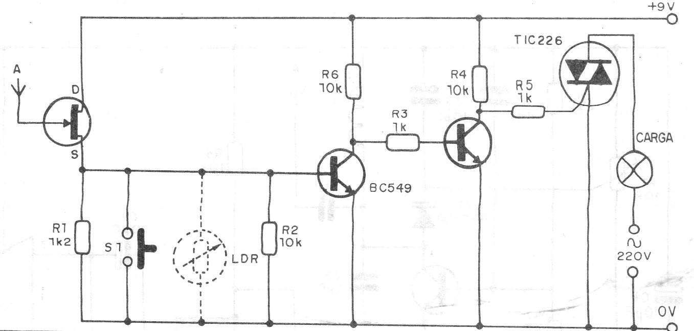 This proximity switch or approach relay uses only transistors and directly controls a Triac. The circuit is from 1990, but all components are common, and the JFET can be a BF245 or MPF102. The triac must be equipped with a heat sink and in the case of controlling a lamp it must be incandescent. Be careful not to touch the sensor, as the circuit is not isolated from the mains.