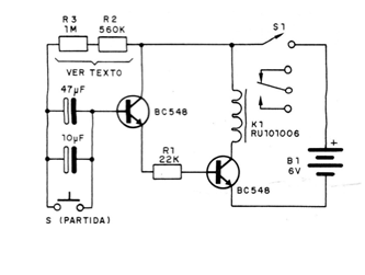 We found this transistorized timer in a 1985 documentation, but it is still up to date by the components it uses. The relay can be of any type sensitive to 6 V and the times are given by the capacitors. You can change the interval by changing these components. R1 and R2 can be a 1M5 potentiometer in series with a 100k resistor to allow adjustment over a wide range of times.