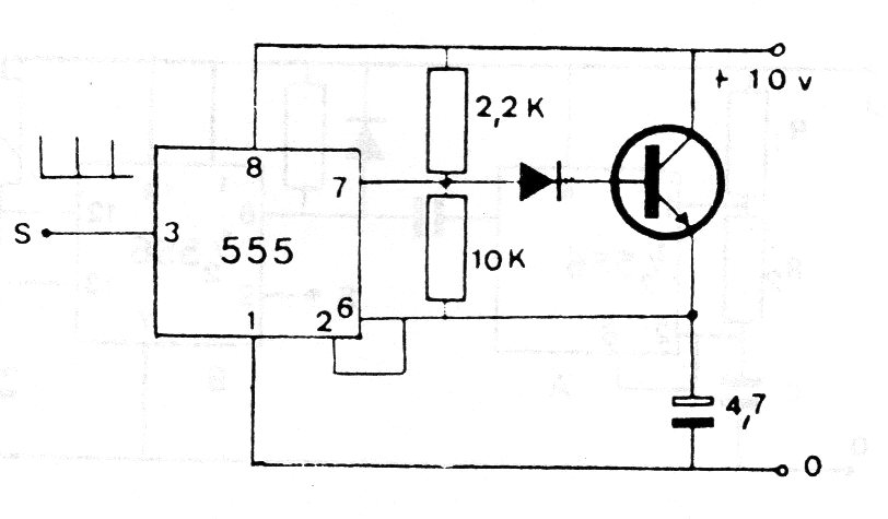 This circuit generates short pulses. The transistor can be a 2N2222 or BC548 and the frequency is given by the resistors and the capacitor that can be changed.
