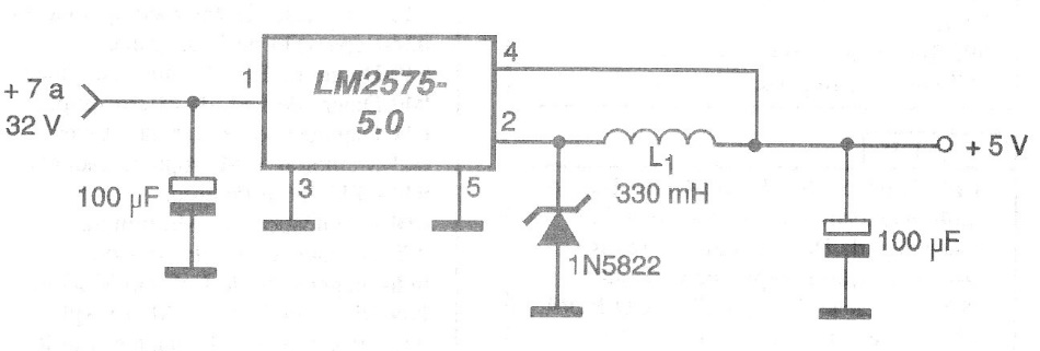 This circuit was suggested by National Semiconductor and is present elsewhere on this site. The LM2575 is not very common today and should be mounted on a heatsink.