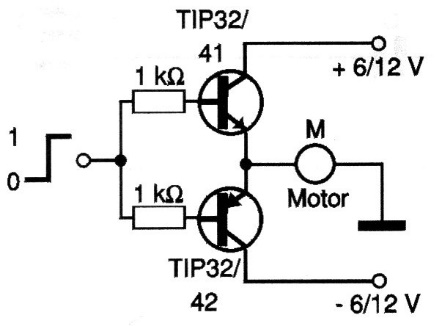 This is a direction of rotation control for a small motor up to about 2 A with the indicated transistors. The circuit can be used as a shield for microcontrollers or in other applications.