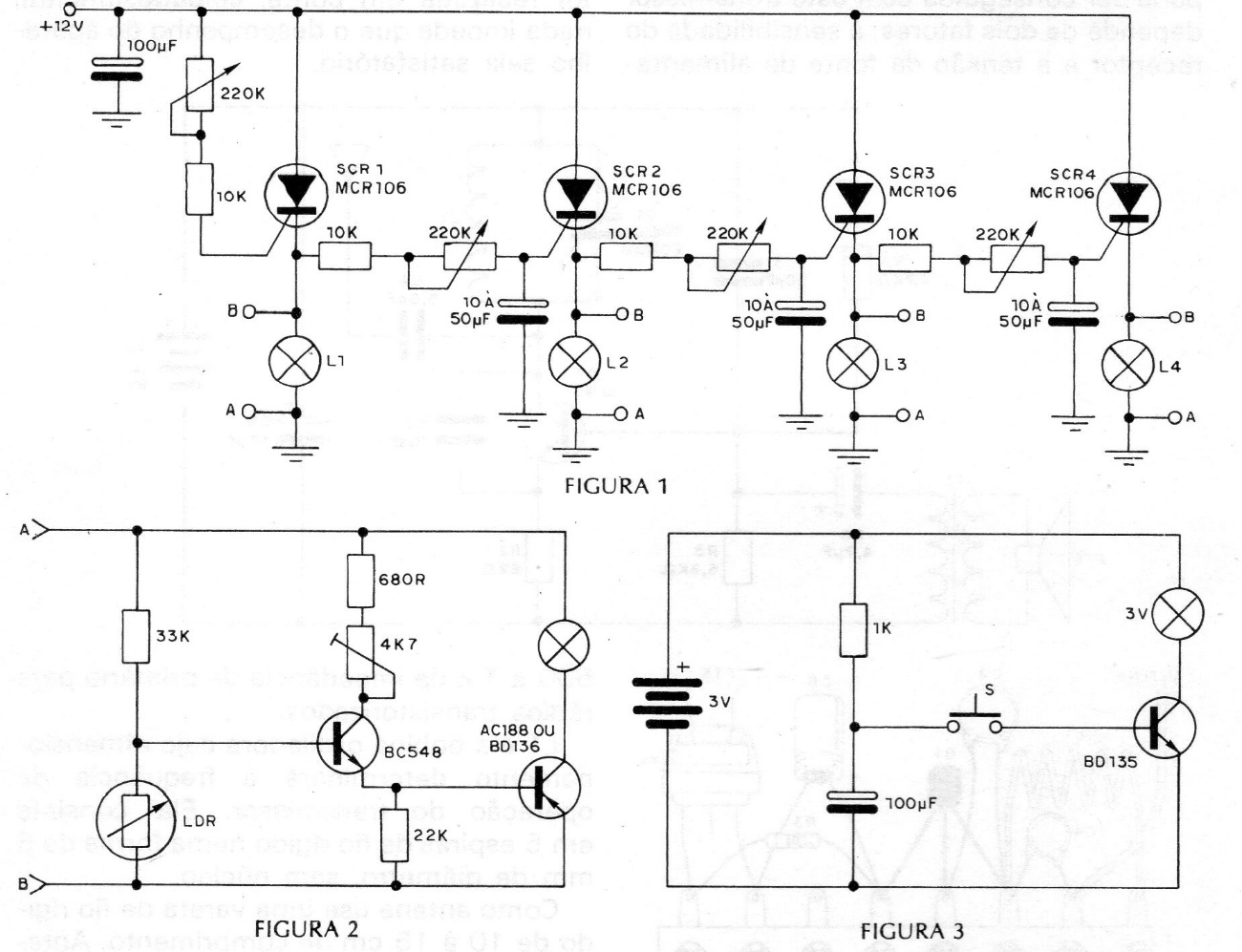 This circuit is from a 1982 documentation. It can be modernized using LEDs in series with 470 ohms resistors instead of the indicator lamps. The LDR must have an opaque tube with a lens as well as the emitter, which can also be an LED.