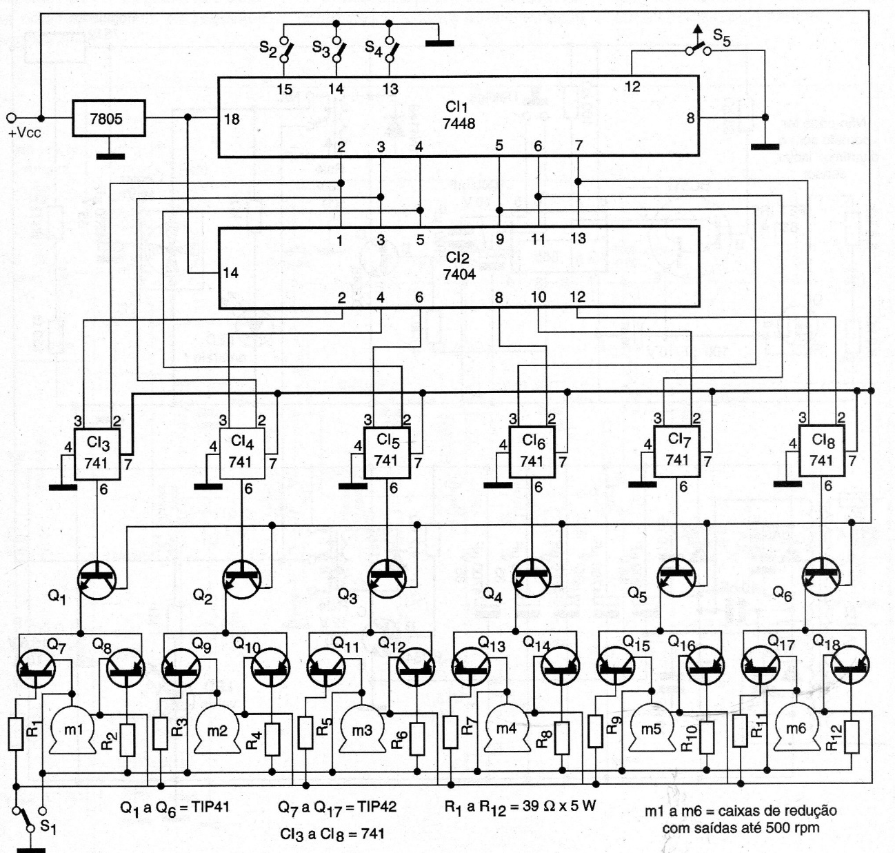 The idea of this automation can be extended to other applications that involve the control of direct current motors from logic inputs. It would be a good shield for microcontrollers with few changes. Switches S2, S3 and S4 determine which motor will be selected using logic. S1 establishes the direction of rotation of the motor. In a shield or robotic application, the control keys can be replaced by sensors and the type of drive as well.