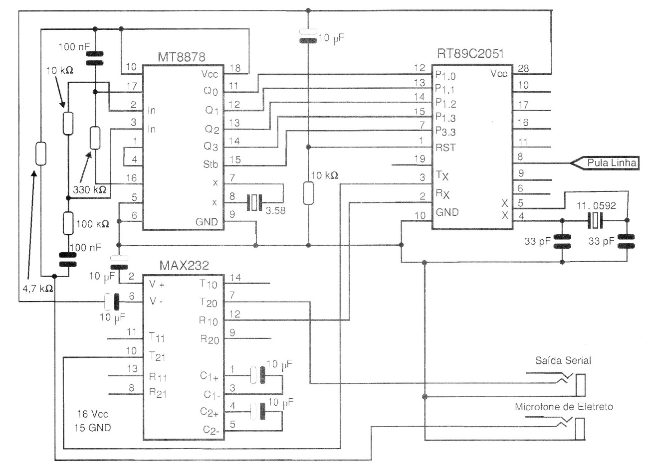 The integrated circuits used in this 1999 project are not very common today. However, they can be used in this application to decode DTMF signals in an interesting shield for PC or even microcontrollers, with some adaptations.