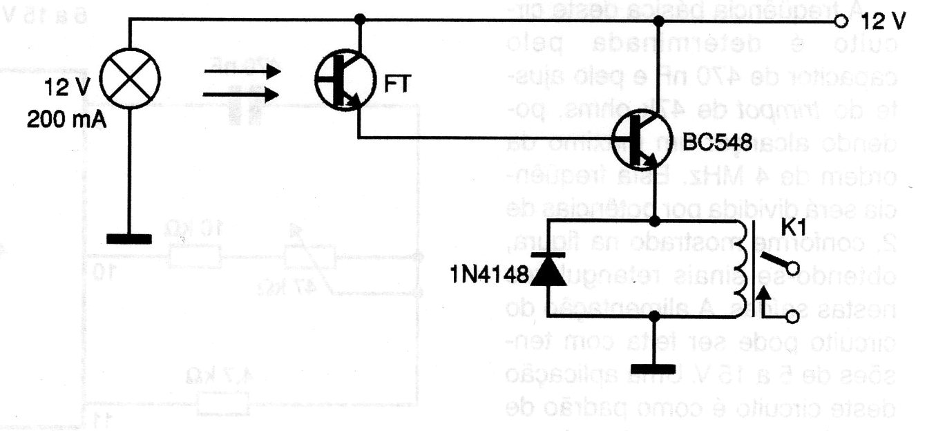 This optical coupler for short distances is powered by 12 V which is the voltage of the lamp and the relay. The circuit can also use emitting LEDs and the phototransistor can be of any type.