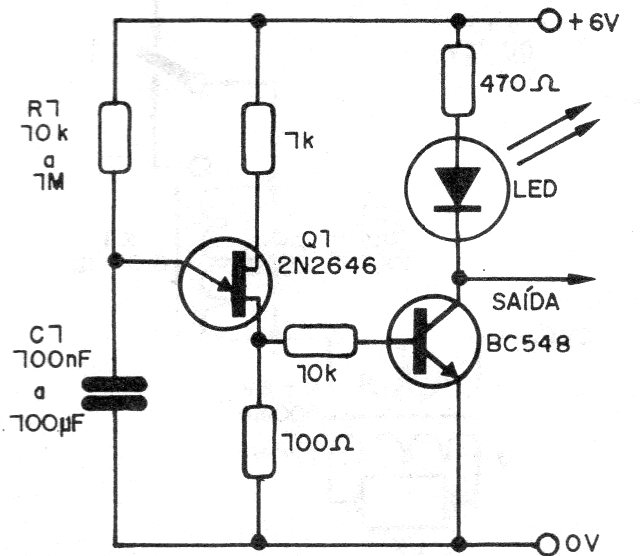 This circuit from a 1989 documentation is more suitable for CMOS circuits since it only works with more than 6 V, given the use of the unijunction transistor. Its maximum frequency is relatively low depending on R1 and C1.