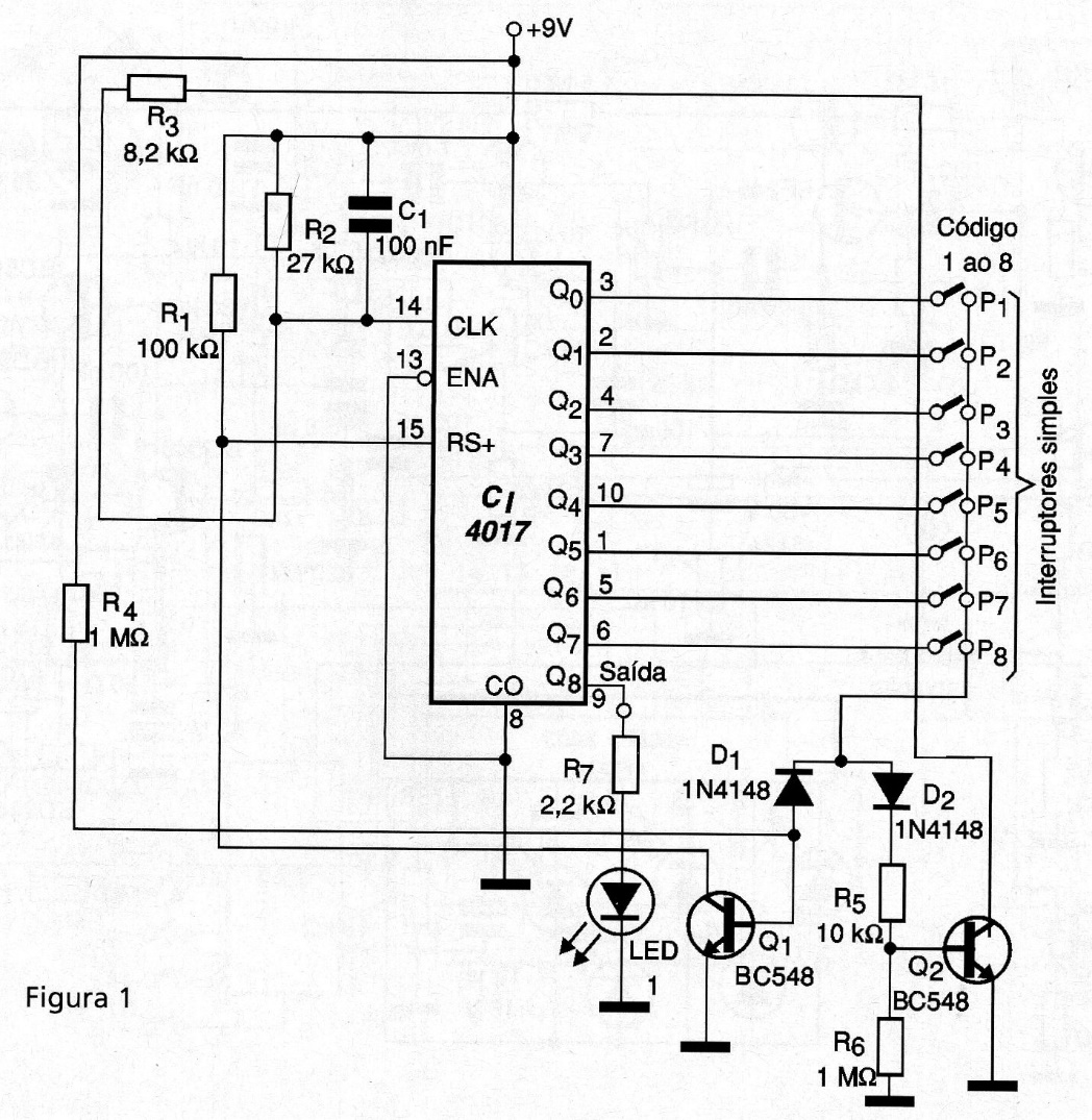 This circuit was found in a publication in 2002 and can be powered by voltages from 5 to 12 V. The output, in the example, is given with the lighting of an LED, but in a practical application, a power step can be used to activate the relay another charge.