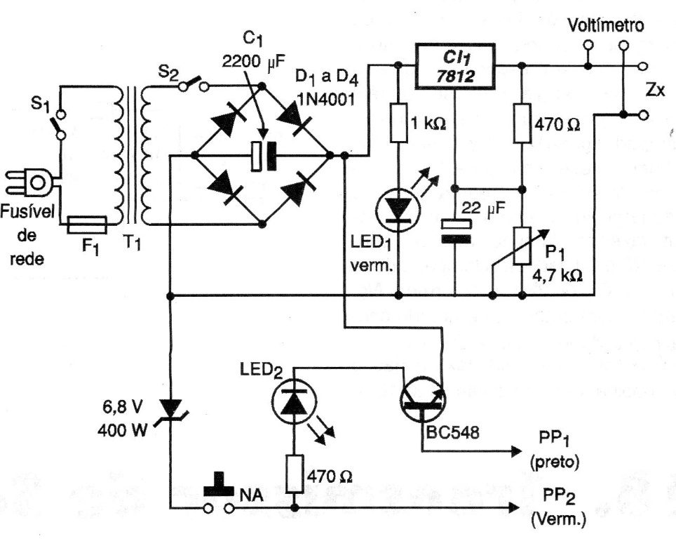 This circuit was found in a 2001 documentation. It is a test of zener diodes that uses a voltmeter or the voltage scale of a common multimeter. What you do is apply a voltage to the diode and observe the point at which it stabilizes.