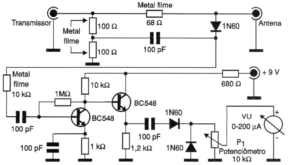 We found this circuit in a 2006 publication. The circuit is simple, being powered by a 9 V battery, unlike some configurations that operate without power. The circuit has a single adjustment made in a trimpot.