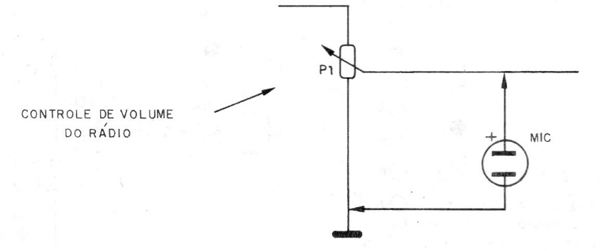 A portable radio with greater power, such as those using medium or large batteries, can be used as a megaphone. The connection of the microphone to the volume potentiometer is shown in the figure. Performance will depend on the microphone and the gain of the radio's audio circuit.