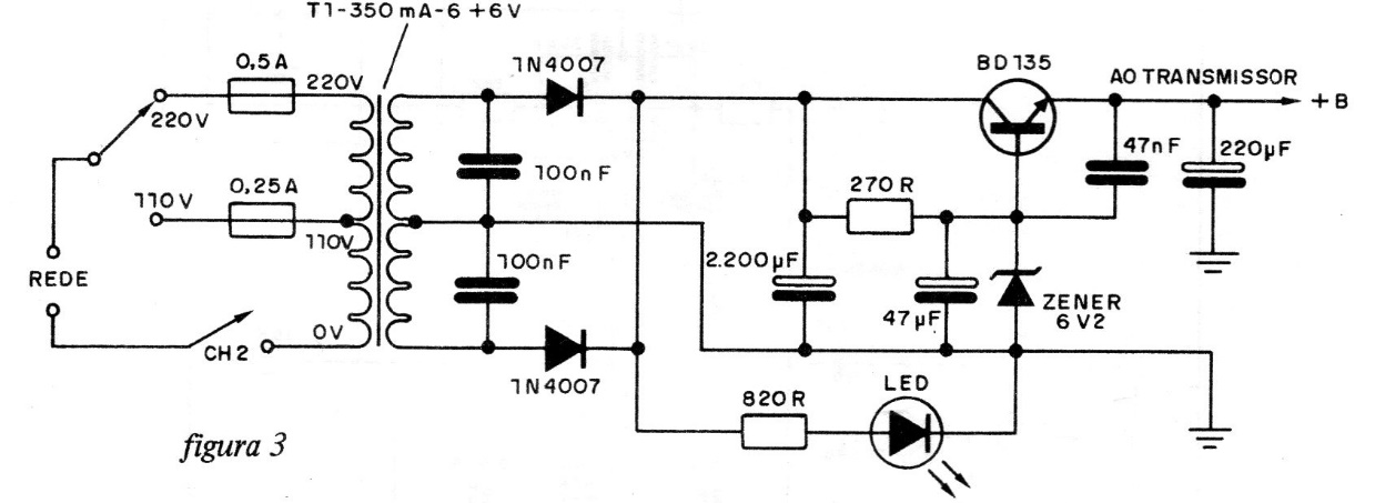 This circuit is indicated for supplying the CB17495E transmitter. The BD135 must have a small heat radiator and the zener may eventually have a higher voltage.