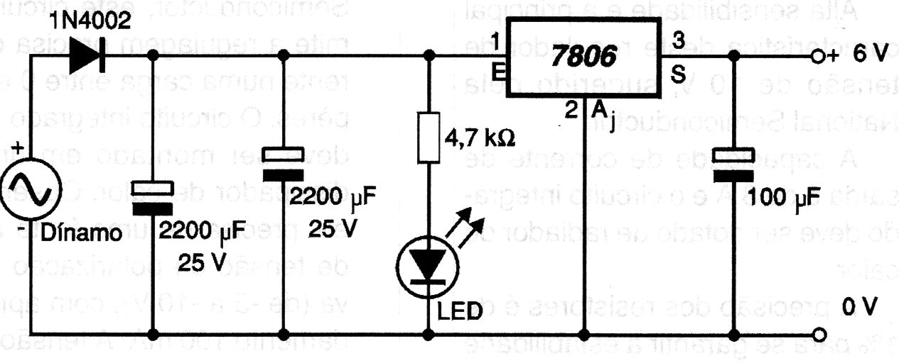 This circuit can provide a maximum load current of 1 A. The integrated circuit must have a heatsink and the capacitors of 2,200 uF can be replaced by a unit of 4,700 uF or even 10,000 uF. These values were not common at the time the project was published (2001). Other minor voltages can be obtained by changing the regulator.