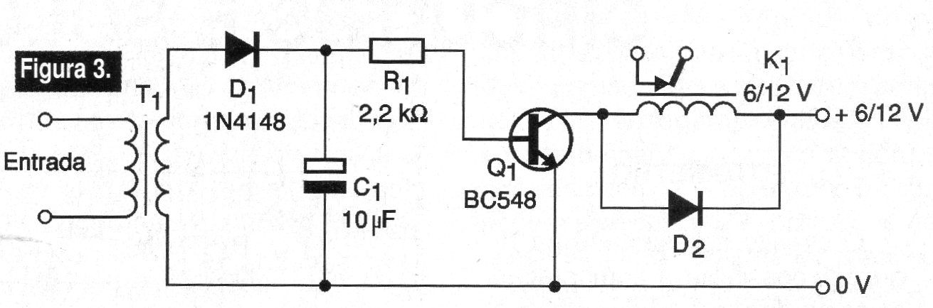 Connected to the output of a small amplifier or receiver, this circuit triggers a relay in the presence of the audio signal. Sensitivity is controlled in the volume of the receiver or amplifier. The circuit can be powered by 6 or 12 V depending on the relay voltage.